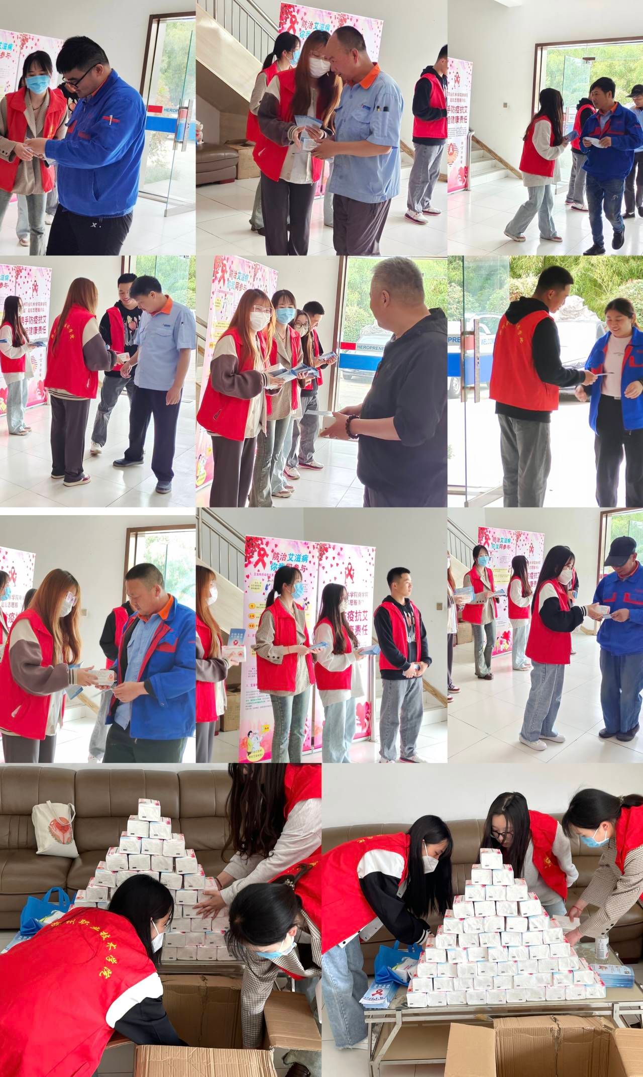本次活动由商学院团总支书记朱芡芡老师带队。活动现场,志愿者们采用海报展示、发宣传单、现场讲解等方式,重点向企业职工们介绍了预防艾滋病的目的和意义、目前艾滋病防控的形势、艾滋病的常见误区,并向企业员工详细讲述了艾滋病的起源、危害、传播途径、常见症状、预防措施以及如何正确对待艾滋病及艾滋病人。讲解结束后,志愿者们还为来往的职工分发预防艾滋病宣传手册和精品小礼物,让他们更加深刻认识艾滋病的防治知识。