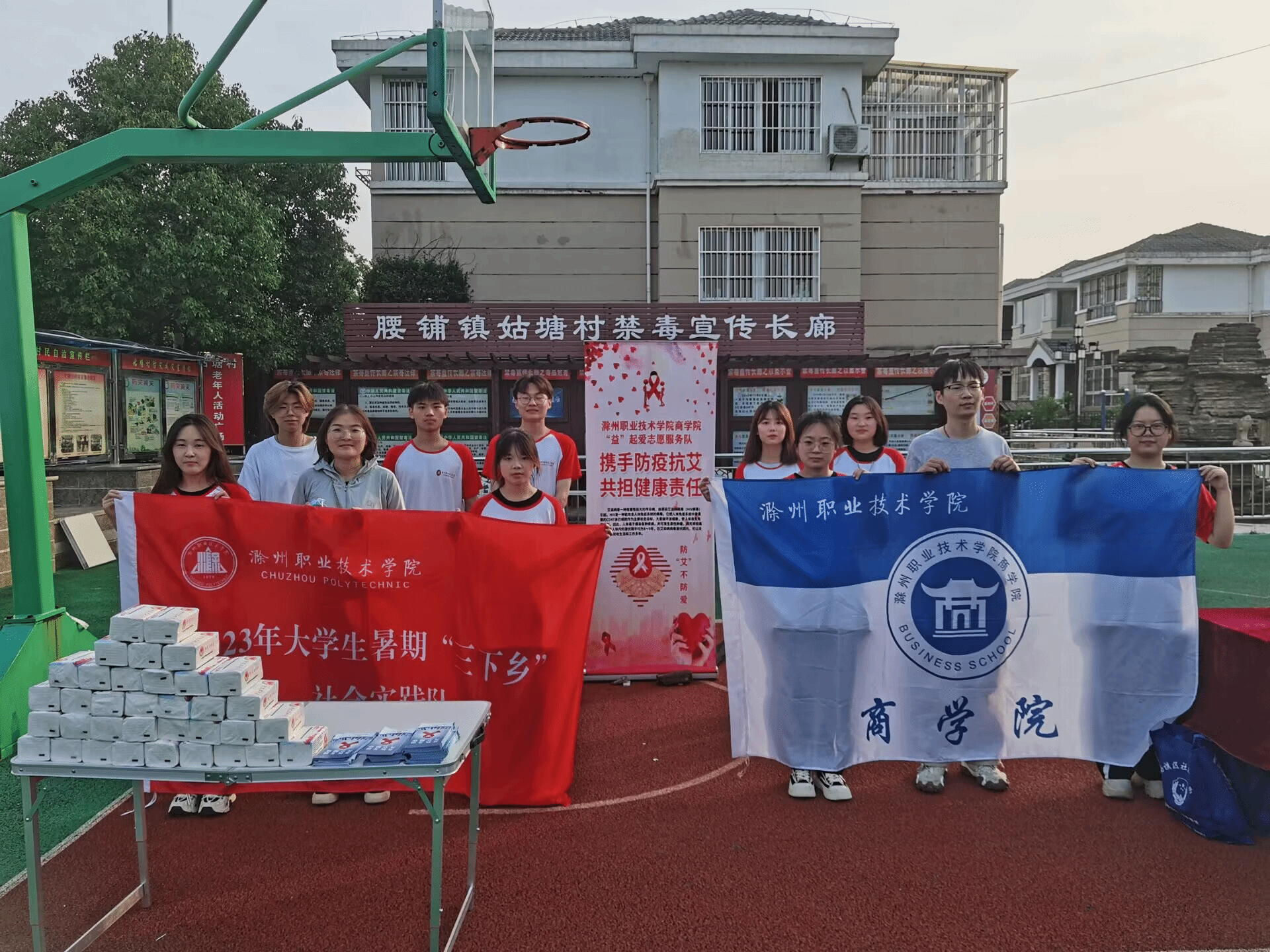 2023年6月20日,“谯梁夜市”走进南谯区腰铺镇姑塘村,我院“益”起爱志愿服务小分队一行11人在朱芡芡老师、徐巍老师的带领下前往姑塘村开展防艾宣传活动。