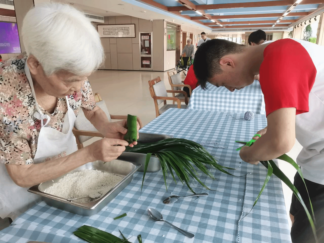 下午14:00,志愿者们来到丰华养老中心,志愿者们分工明确,互相配合,有的陪老人聊天、有的陪老人下棋、有的陪老人打麻将、有的和老人一起包粽子,同时送去牛奶、面包等慰问品。志愿者们用实际行动传递了新时代青年人的温暖和关怀,让老人们感受到节日的温馨。