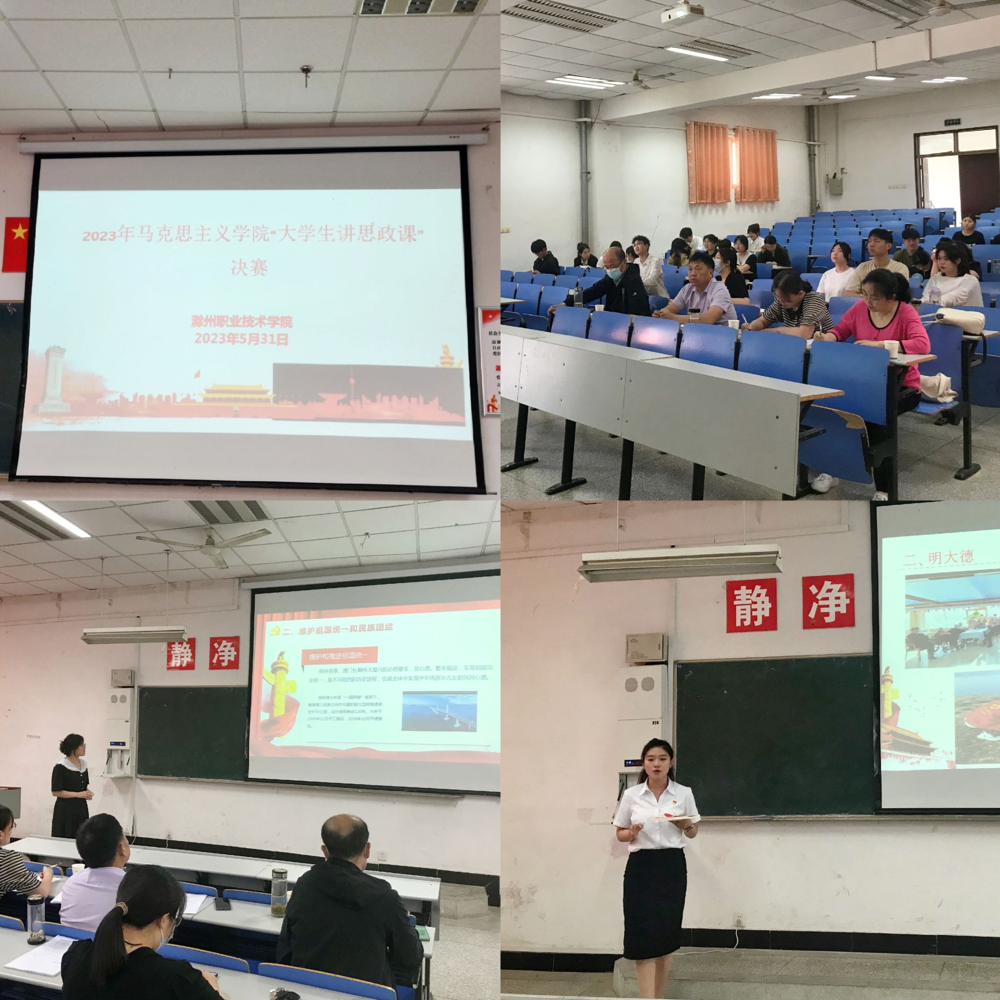 为深入贯彻落实习近平总书记关于“大思政课”建设的重要指示精神,持续推动党的创新理论走进青年,充分调动当代大学生学习思政课的积极性、主动性和创造性,马克思主义学院善用“大思政课”坚持守正创新,按照学期初制定的《关于举办“大学生讲思政课”展示选拔赛的方案》,5月31日,马克思主义学院在北阶102、104教室举办2023年金沙威尼斯官网“大学生讲思政课”决赛。