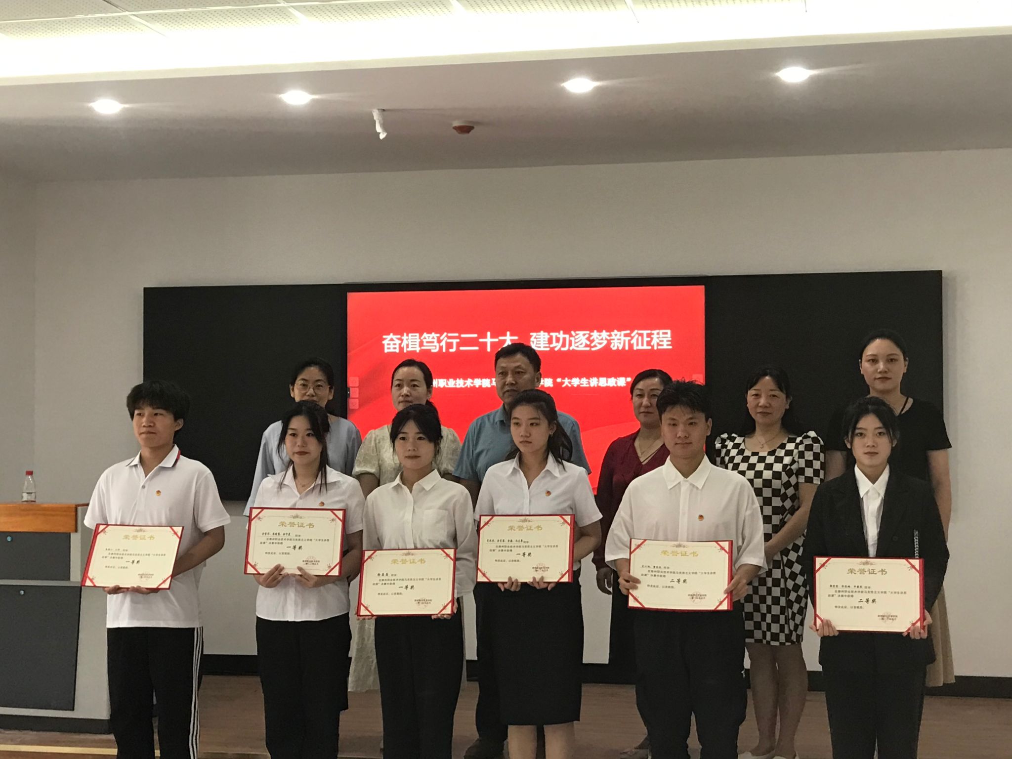 马克思主义学院领导为“大学生讲思政课”的获奖代表及优秀指导教师进行颁奖。本学期学校已相继开展“名师示范课”“英模大师进课堂”专题课“大学生讲思政课”以及“示范观摩课”等系列活动。通过广泛开展教研活动,有助于提升思政课教师队伍的整体教学水平,激励学院全体老师的教学创新热情,增强教学相长、体系转化意识,为全力推进思政课程改革、马院建设提供重要抓手。