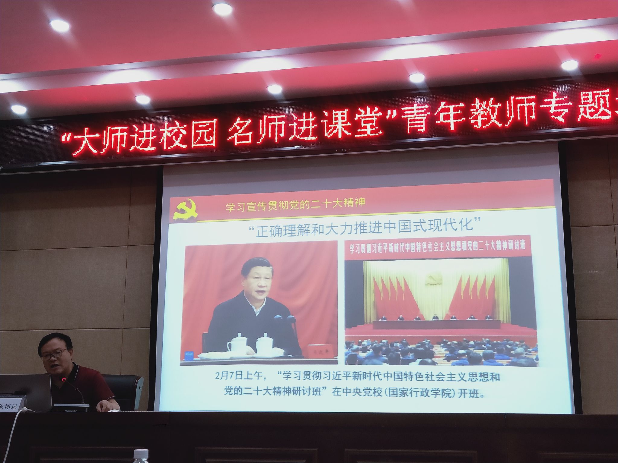 陈怀远教授以近三年“中央一号文件”精神为指导,紧紧围绕农村改革和农业发展问题,在市委党校主体班教学中开设相关专题课,并积极为县(市、区)农委等部门举办的培训班作专题辅导。先后在四期“全市领导干部学习贯彻党的十八届三中全会和习近平总书记系列重要讲话精神”轮训班上,主讲“深化农村改革与发展现代农业”专题,课程得到学员好评。先后主持或参与省、市级调研课题5项,在省级及以上刊物上公开发表理论文章四十余篇。本次培训会陈怀远教授围绕新时代新征程党的中心任务、中国式现代化的中国特色和本质要求、中国式现代化路径探索与战略演进、基于中国国情的中国式现代化道路等几个方面,重点解读了以中国式现代化全面推进中华民族伟大复兴的内容,并指出实现中华民族伟大复兴已进入不可逆转历史进程,中国共产党已带领全国人民走过了万水千山,还将在新征程上继续跋山涉水。本次报告系统全面、内容丰富、生动鲜活、深刻透彻,具有很强的理论性、思想性、指导性和实践性,对全校党员教师更加准确地理解和把握党的二十大精神,具有重要的指导作用。