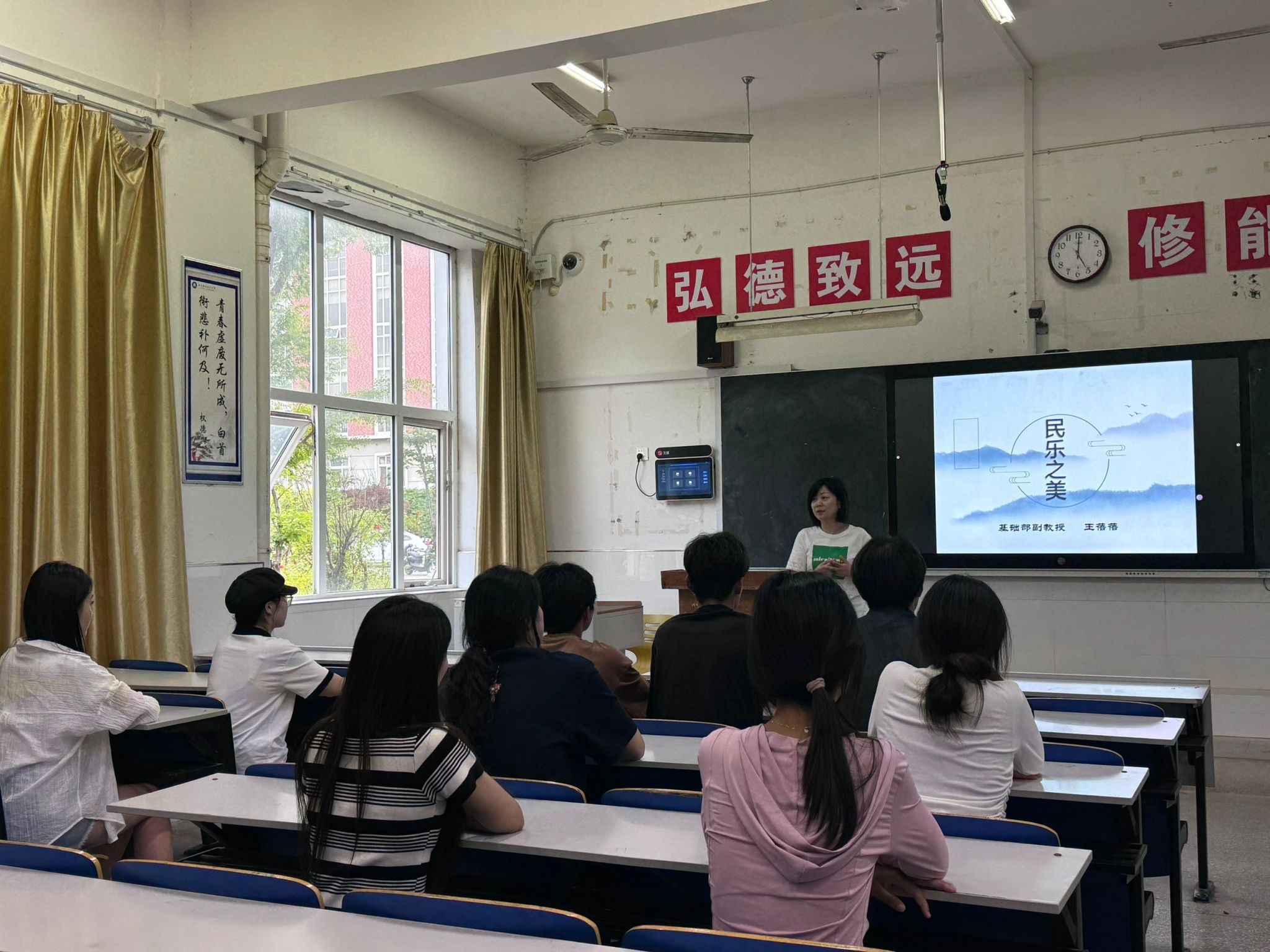 为弘扬中华优秀传统文化,提升青年学子美育素养,丰富校园文化生活,5月31日下午,基础教学部在4107教室举办了“民乐之美”学术讲座,金沙威尼斯官网人文素养教研室副教授王蓓蓓主讲,学校合唱团、广播站和部分音乐爱好者聆听讲座。