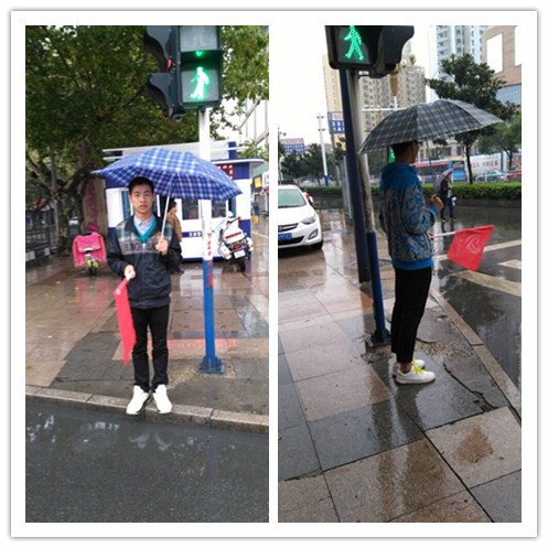 为了倡导文明出行的交通习惯,贯彻帮助他人、奉献社会的生活理念,2016年10月1日-15日,机电系团学干在天长东路与南谯北路交叉路口开展文明交通志愿行活动。