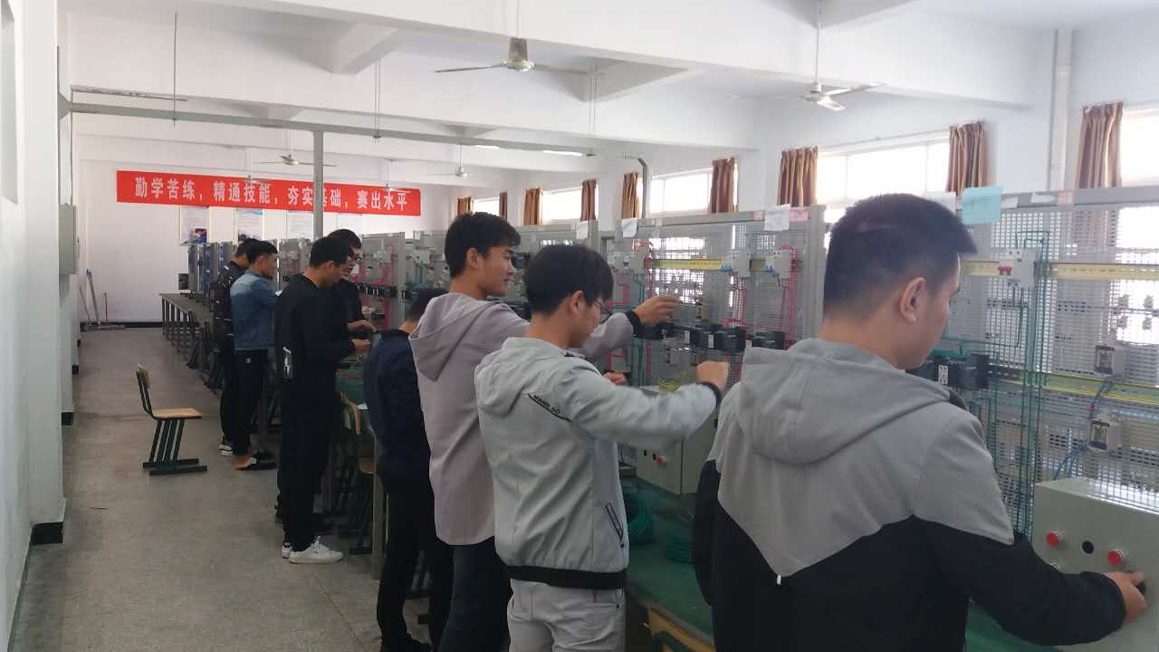 本次大赛从8点正式开始到11点结束,历时3个小时。参赛选手必须依据考场提供的控制要求,在规定时间内完成线路的安装和调试。每组选手们都分工合作,有的拨线有的安装,有的查故障,大家忙的不亦乐乎。评委老师们在比赛过程中认真观察操作步骤,严格按照评分要求细化分数等级,最后评委们根据选手的线路完成质量和时间行综合评定,评出了2组一等奖,3组二等奖和5组三等奖。