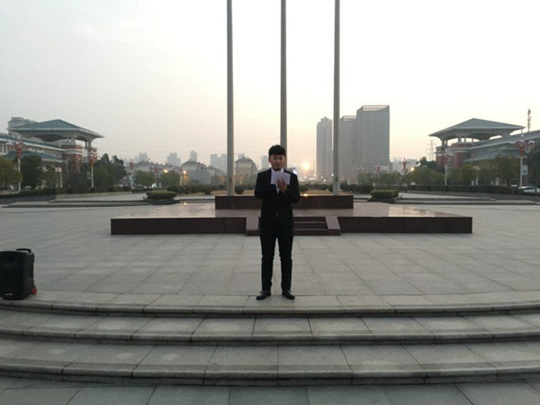 早上6点30分前所有团学青年到达广场,随后机电系国旗护卫队护送鲜艳的五星红旗进场行礼完毕,伴随着庄严的国歌,五星红旗冉冉升起,在场的每一个人向国旗行注目礼,深怀无限热爱之情和崇高的敬意。升旗仪式结束后由18机电四班和18光伏班团支书作为代表讲话,作为新时代青年,要有责任感,勇于担当,把强国梦变成青年的自强梦,用昂扬的斗志去迎接新时代新的挑战。