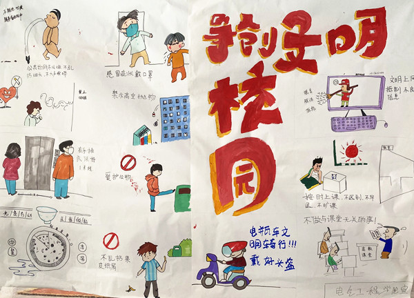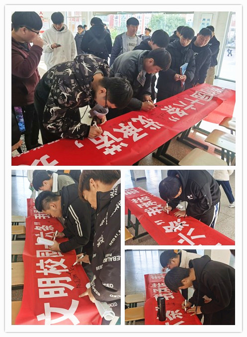 “不随地吐痰、文明就餐、不乱停车辆、不乱扔烟头、不带餐饮食品进课堂、不迟到、不旷课……”这些看似日常简单的行为,人人做到却也没那么容易。我院新闻传播中心通过生动形象的画面将“校园文明十六条”一一展现出来,营造维护美好校园的氛围。创建文明校园是每一个青年学生共同的责任,大家在学习后纷纷在横幅上签名,表示在以后的学习生活中会认真遵守、积极践行“文明校园十六条”,从现在做起,从自我做起,以实际行动积极构建安全文明的和谐校园。