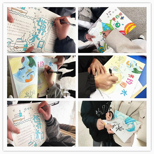 在班长和团支书的带领下,支部成员分成四组,通过自制“世界水日”主题手抄报向校内团学青年宣传“珍惜水、爱护水、节约水”的绿色发展理念,并向团学青年发出倡议,希望大家可以争当科学用水的倡导者、争当节约用水的践行者、争当文明用水的参与者,一起携手共同守护青山绿水!同时,参与的团学青年在宣传手抄报上签名,愿意承担起节约用水和保护水资源的责任。