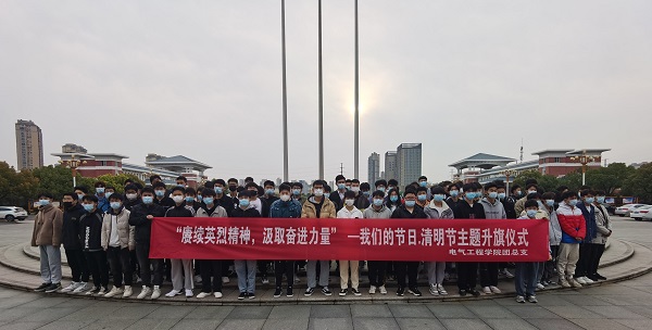 缅怀,为铭记,更为传承。4月1日清晨,电气工程学院团总支在综合楼前举行“赓续英烈精神,汲取奋进力量”——我们的节日.清明节主题升旗仪式。我院团干部黄杜金鑫主持仪式,百余名团学青年参加,共同缅怀英雄先烈,致敬英烈精神。