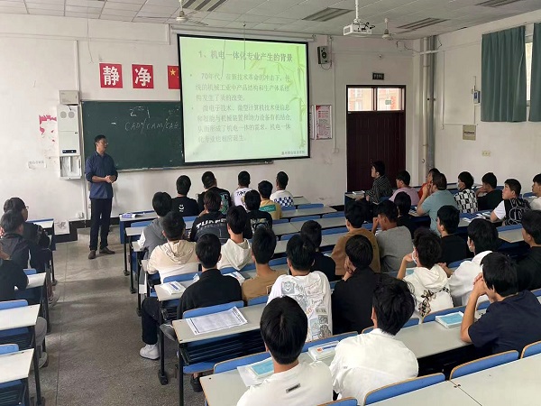此次新生教育活动是由各专任教师主持的专业介绍,主要由朱山川、张小光、卢干和李朋老师分别对光伏工程技术、工业机器人、机电一体化技术和电气自动化技术四个专业进行深入系统的介绍。四位老师主要从专业培养计划、专业培养目标以及就业去向等方面介绍各个专业情况,并对学生提出的相关问题进行专业解答,同时强调学生需要加强硬技能训练、训练思维能力、提升自主学习能力、提升自我管理能力的重要性。
