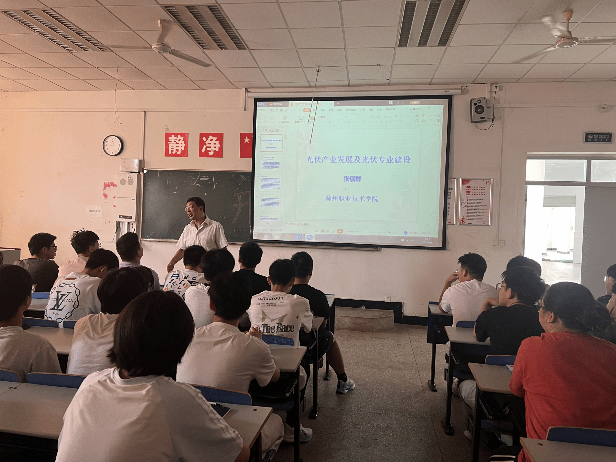 8:30,两场专业介绍同步开启。在北阶104教室,院长张信群围绕光伏工程技术专业展开讲解,结合行业发展趋势,展现出专业的广阔前景;在北阶102教室,孙逸哲老师从专业核心课程到未来就业方向,为新生介绍电气自动化技术专业,让新生对该专业有了初步认知。