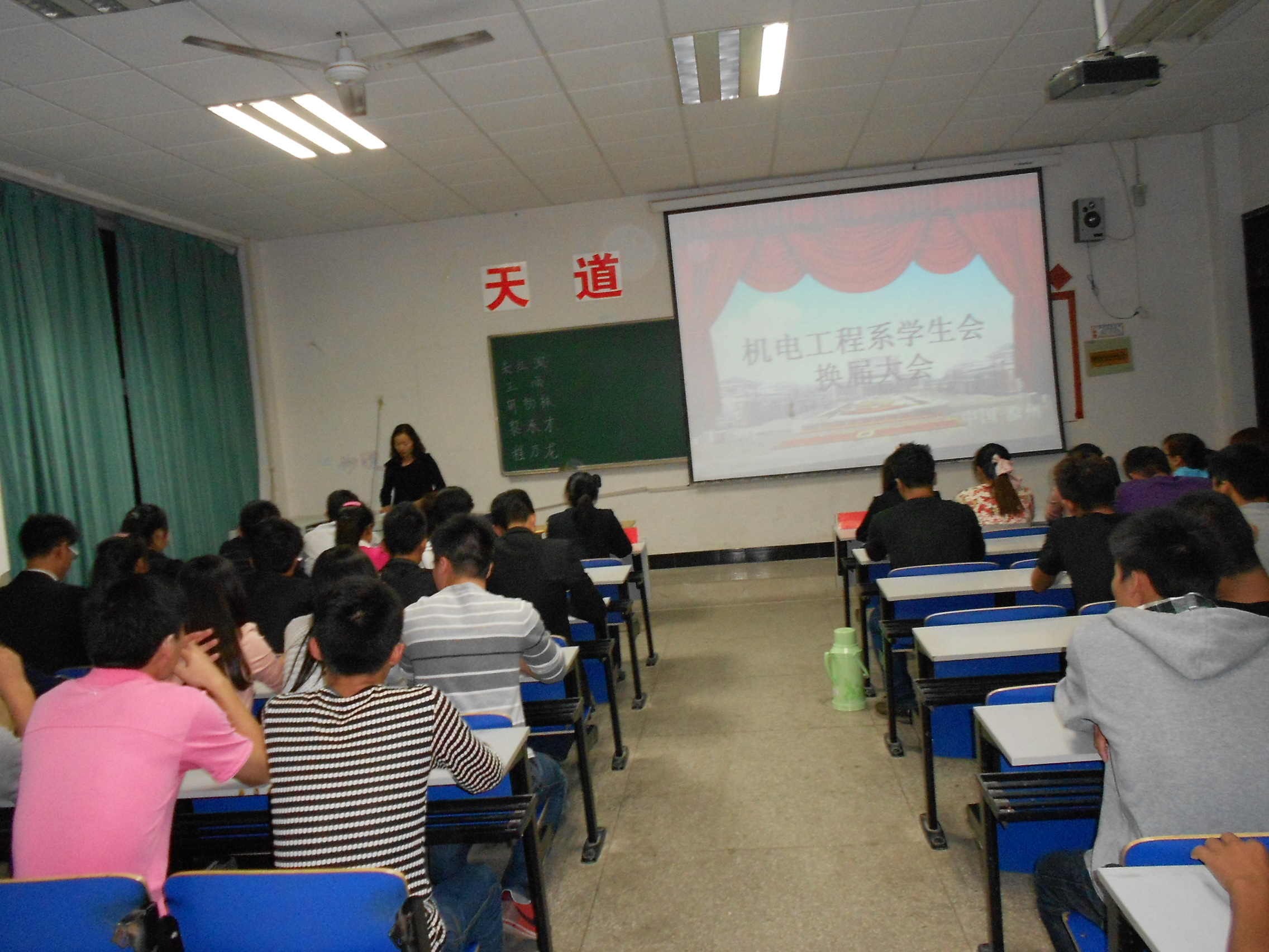 2013年10月9号晚6点半,机电系学生会换届选举大会在5113教室顺利展开,此次会议由我系学生会新闻部部长杜凉露主持。出席本次大会的有我系团支部书记陈琴,学生会指导老师张文,辅导员冯早红,副团支部书记、系学生会主席、副主席以及各部门部长、干事和个班代表。