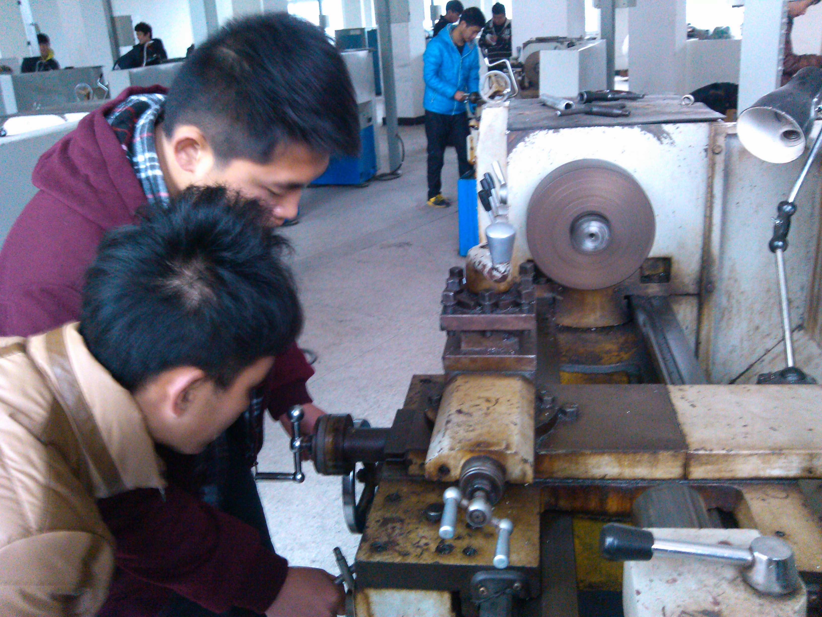 学习技术走遍天下,掌握技能改变人生。为了将所学的知识发挥到实处,2013年12月16日12级机电五班开始了为期俩周的车工实习。同学们带着热情和不怕苦累的精神早早得来到了车工实习地。