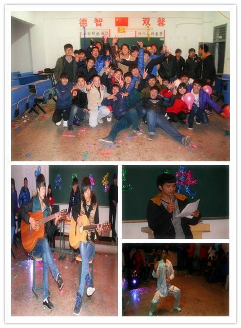 风鸣马啸迎新年,中华大地俱欢颜。2014年1月2日晚上,今天是个特殊的日子,我们机电二班所有同学在5204欢聚一堂;,我们迎来我们的大学生涯中第一个由班级同学在一起开展的元旦晚会。