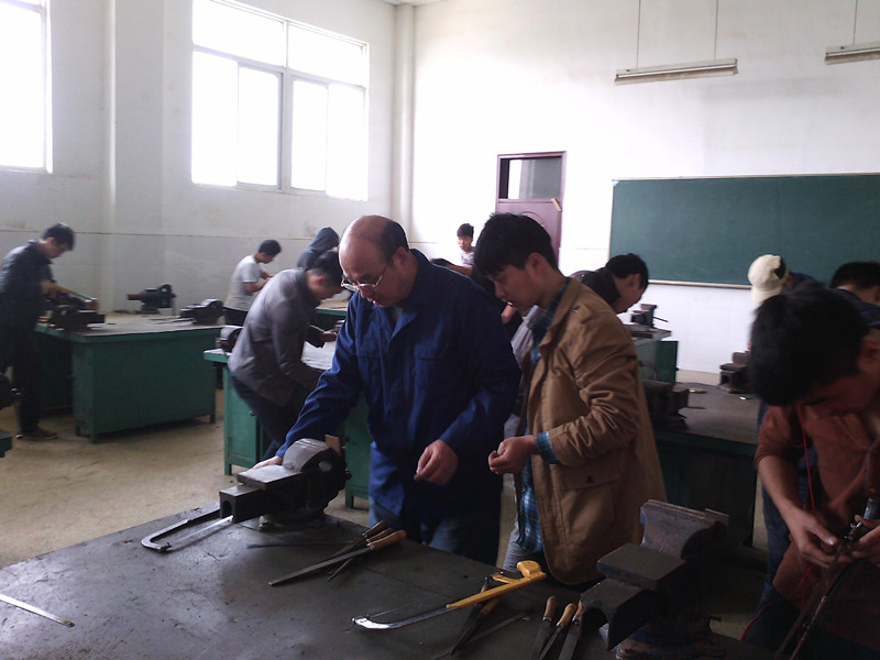 13级光伏班于4月14日开始了为期一个月的钳工技能培训课。钳工是以手工操作为主,使用各种工具来完成零件的加工、装配和修理等工作。第一天来到实训场地,各种设备很快的吸引了我们的眼球,新奇、好玩是我们的第一感觉。继指导老师的安全教育课后,我们开始尝试着锯起了钢板。累、痛很快取代了我们当初的感觉。传来的是各种嚎,各种怨。