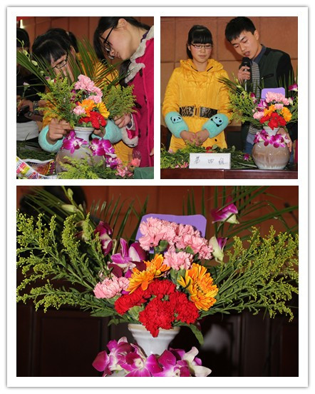 有限的青春,无限的光芒!为了显现我们金沙威尼斯欢乐娱人城深厚的文化底蕴,让广大的女同学们充分展示自己的魅力光芒,2014年3月6日在金沙威尼斯官网综合楼五楼报告厅举行了金沙威尼斯欢乐娱人城第六届女生节开幕式,并举行了第一轮表演赛之插花比赛,机电系同学积极参加,并取得了第二名的好成绩。