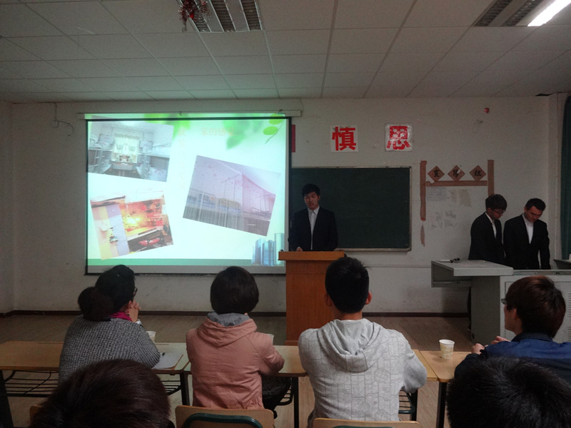 我系有六个团队参加了本次大赛,比赛在主持人介绍完参赛流程后正式开始,各参赛团队陆续上台对自己的作品进行展示和讲解,并接受评委老师的点评与提问。各位评委老师从实际出发向选手们提出了一些关于预算、资金、技术来源等问题,有的团队因为没有做好充足的准备而对评委老师提的问题感到手足无措,但也有一些选手能够快速组织语言全面的回答老师提出的专业问题。