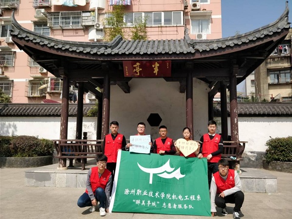 为了促进当代大学生全面发展,传承雷锋精神,争做新时代雷锋代言人。机电系“醉美亭城”志愿者服务队于2018年3月11日前往滁州市的半亭和礼贤亭进行清扫志愿服活动。