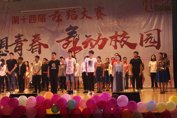 酷炫的灯光秀拉开了大赛帷幕,在同学热烈的欢呼声中,比赛正式开始,各系队伍按照顺序一一登台,10支舞蹈种类多样,婀娜多姿的敦煌舞引人入胜,青春活力的现代舞动感十足,如水墨画般的古风舞令人沉醉。我系的小伙子们用娴熟的动作、青春的活力展现着属于他们的舞台,最后获得三等奖和优秀奖。
