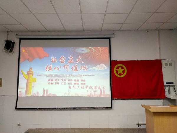 为引导团学青年树立正确的价值观,电气工程学院团总支于12月24日晚在5103教室开展“社会主义核心价值观”主题学习活动,团总支成员和20级各班班长、团支书参加。