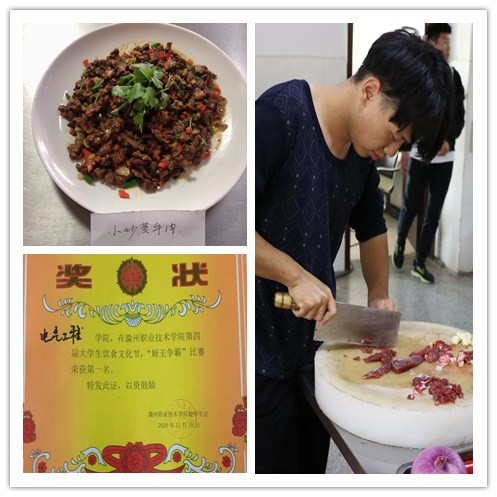 比赛在金沙威尼斯官网老食堂三楼举行,现场热闹非凡,在三十分钟比赛中,各个学院的同学们各施所长,尽心尽力展示厨艺。我院参赛学生以“小炒黄牛肉”获得评委的认可,获得本次“厨王争霸”比赛第一名。