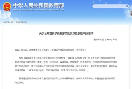 图1 教育部网站公布的现代学徒制试点验收结果