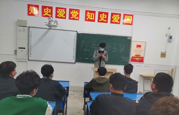 三月份以来,我院召开学生管理工作会议传达学校征兵工作会议精神,强调征兵工作,坚持线上线下同频共振,督促辅导员先后组织各班级通过宣传栏张贴宣传海报、召开征兵主题班会、播放征兵宣传片等形式,精准摸排,做好征兵政策宣传与动员工作。