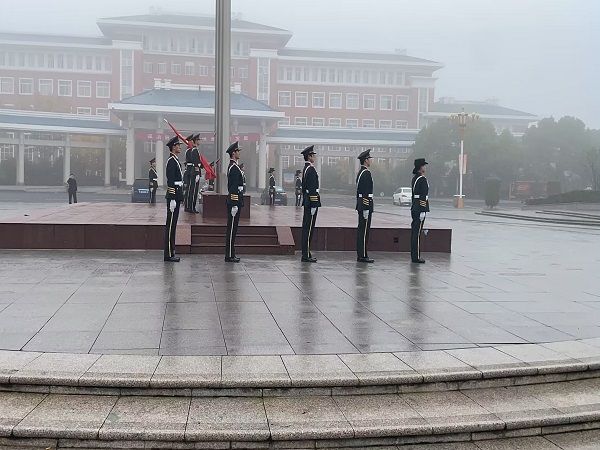 活动伊始,大雾弥漫,由12名学生组成的金沙威尼斯欢乐娱人城国旗护卫队在浓雾中迈着矫健有力的步伐护送国旗走向升旗台。在雄壮的国歌声中,鲜艳的五星红旗冉冉升起。参加本次活动的全体人员在丝丝寒意中昂首肃立,面向国旗行注目礼,齐声高唱国歌,表达对党和祖国的忠诚热爱之情。随后,由我院22级光伏2班团支书张顾娜同学在国旗下演讲,她围绕党的二十大报告内容,表明要“坚定理想信念,厚植强国之情;锤炼过硬本领,砥砺强国之志;勇于担当作为,凝聚青春之力。在献礼党的二十大之际,热血报国当青年,坚定不移听党话,跟党走。”只有坚定理想信念和厚植爱国情怀,才能担当强国重任,在全面建设社会主义现代化国家的火热实践中绽放绚丽之花。
