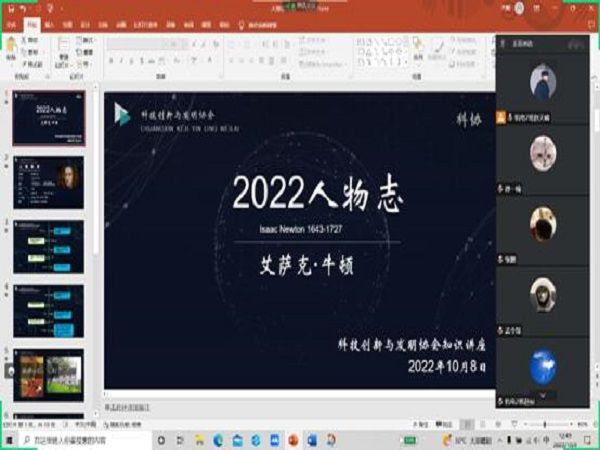 为了丰富校园文化生活,提高学生们的艺术积极性,引导学生们积极开展文化活动, 10月8日,我院科技创新与发明协会在腾讯会议上成功举办了“名人故事会之牛顿”主题学习会。