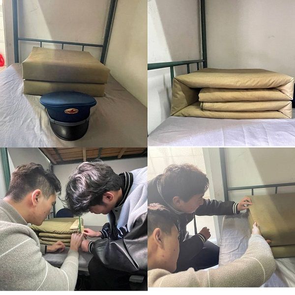 为创造整洁的寝室生活环境,打造和谐的寝室氛围,我班组织寝室卫生大扫除活动。以我班退役军人的宿舍为模范寝室,各寝室长带头学习寝室内务整理,规范摆放生活用品。寝室长再回到宿舍教宿舍成员如何将被子叠成“豆腐块”,物品怎么摆放整齐。大家一起动手共同营造了一个干净舒适的生活环境。