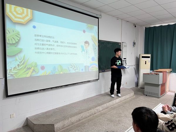 本次活动内容有:什么是“四害”、“四害”对人类有哪些危害、疾病的治疗与预防。活动中,我院学生会主席张文龙通过PPT展示与讲解的形式,向大家进行科普:在日常生活中,“四害”也经常可见,特别是在同学们的宿舍中,潮湿脏乱、很容易引来“四害”的侵害;由此可见保持寝室卫生干净的重要性,并呼吁同学一定要做好通风和卫生清洁等事项,有效预防四害的滋生。与此同时,参会的学生积极发言除“四害”的见解和方法,并朗读PPT中对除四害的相关知识。
