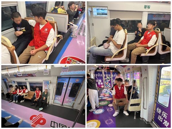 活动的过程中,我院志愿者们以一对一的陪同方式,从星星家园准时出发。在琅琊山地铁口,志愿者们积极组织星星孩子们排列好整齐的队伍,协助他们乘坐电梯、扫码进站,并陪同他们一起候车。上车后,志愿者们始终秉持着“文明乘坐,轻松体验”的宗旨,安排星星的孩子们各自坐在相应的座位上,不大声喧哗,不随意走动,不吃食物,也不追逐打闹。星星的孩子们沿途欣赏了滁州快速发展的城市风貌,以一种全新的乘坐方式体验了欢乐的乘坐时光。