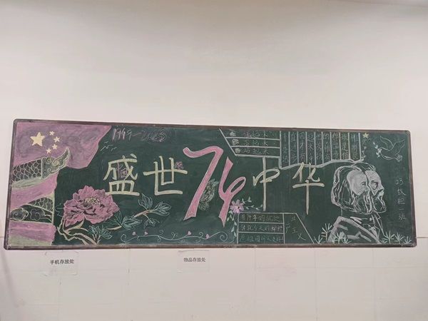 在院团总支和各班班委的带领下,同学们积极行动,精选素材,精心设计版面,用粉笔书写、以图画传情,向祖国母亲献礼。同学们以一块黑板为框架,以粉笔、颜料为工具,谱写爱国情怀,细致笔触,勾勒出一幅幅美丽画卷。让一个个黑板演绎出跳动的气息,以丰富多彩且充满青春活力的画面呈现在我们的眼前。同时在这充满意义的节日里,我们更要坚持中国特色社会主义道路,为实现中华民族伟大复兴的道路而铺砖添瓦,贡献出自己力所能及的力量。此次活动,让我们共庆祖国华诞,共享祖国荣光,黑板上的字画同时彰显了我们现如今拥有的强大的自信力,深深的为祖国而感到无比骄傲和自豪。