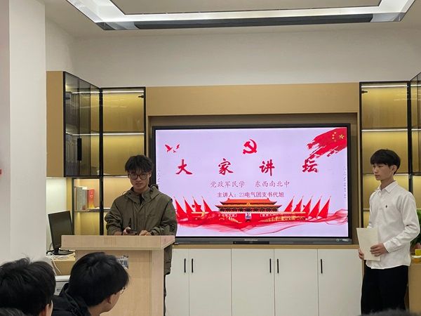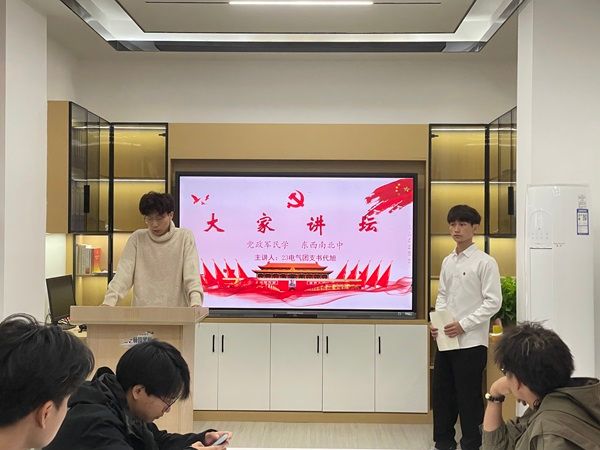 11月6日晚,我院【团青学堂】第一期活动正式举办。第一期由23电气班团支部书记代旭主讲,他面向支部学生开讲《中国共产党领导是中国特色社会主义最本质的特征》这一篇章,分别从历史角度、国情角度充分论证了这一观点。随后带领了支部成员从学习强国端口观看【每日一习话】之当代青年要在实现民族复兴的赛道上奋勇争先,并从青年视角、青年思想组织支部成员分别上台交流发表心得感悟。历史和现实都告诉我们,中国特色社会主义是近代以来中国人民对其他救国途径的尝试全部碰壁之后做出的历史性选择,是中国共产党领导人民历尽千辛万苦、付出巨大代价取得的根本成就。青年学生纷纷表示,只有坚持党的正确领导,中国人民才能从根本上改变自己的命运,才能取得举世瞩目的伟大成就,才能迎来伟大复兴的光明前景。