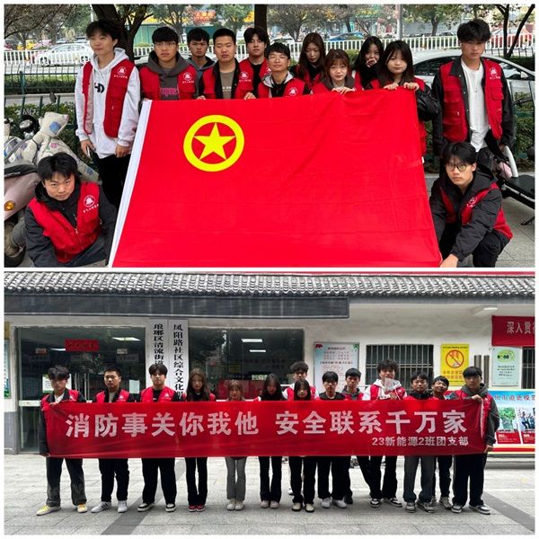 为进一步普及宣传消防安全知识,全面提升学生和社区居民的消防安全意识和自防自救能力,在11月9日消防安全日来临之际,我院23级新能源2班团支部联合凤阳路社区文明实践站开展“消防事关你我他,安全联系千万家”消防安全日志愿服务宣传活动。