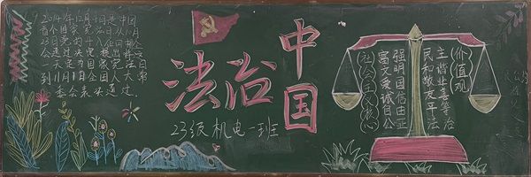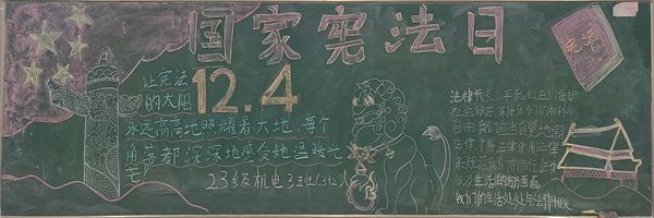 2023年是我国现行宪法公布施行41周年,在12月4日这天将迎来第十个国家宪法日。电气工程学院各班级在团总支宣传部和各班班委的带领下纷纷开展以“宪法日:弘扬宪法精神,构建法治中国”为主题的黑板报活动。