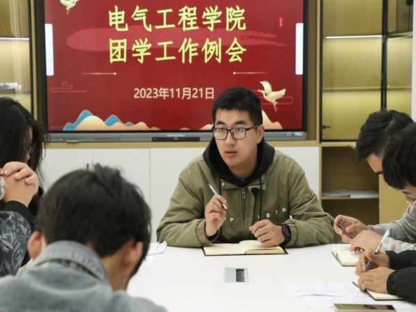 会议伊始,由团总支副书记张梦梦、学生会主席栗豪做月度工作报告,分别从思想政治学习、团学活动开展、社会实践服务等层面做简要报告;随后,由办公部部长崔文兵、刘邦杰分别宣读团总支、学生会12月份工作计划,确立工作重点,提前策划布置;最后,由我院团总支负责人臧铭老师做进一步总结部署。他指出,团总支、学生会是电气工程学院学生群体的先进代表,在日常工作中各位成员既要有责任意识,发挥好表率作用,也要有服务意识,深入基层学生团体了解学生诉求,同时,也希望大家能够在服务中提升和锻炼自己,促进自身的全面发展,并要求各部门要注重学习培训,拓宽服务范围,夯实责任落实,为建设更好的团学组织而不断团结奋斗。