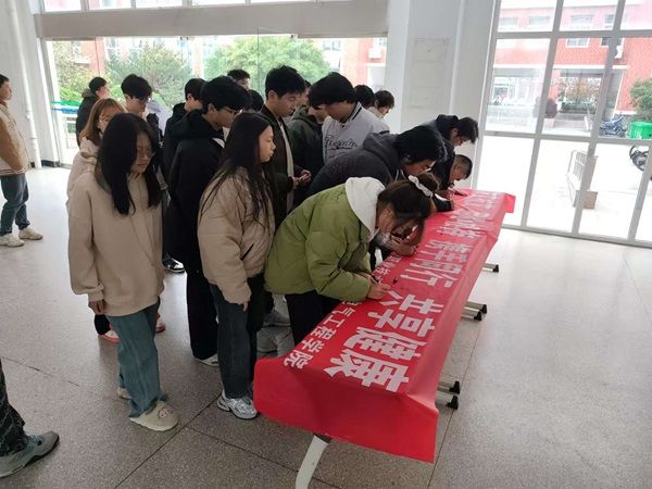 主题讲座结束后,“防艾抗艾,用心相待,携手同行,共享健康”横幅吸引了众多学生驻足签字。防艾抗艾是社会稳定的重要因素,也是每个人共同的责任,青年学子们纷纷在横幅上签名,并在此承诺会严格防范艾滋病的发生,做到“不歧视,不传播,不恐惧”。