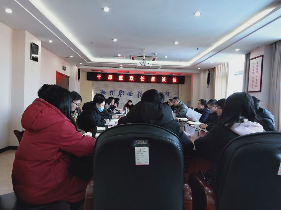 1月13日上午,学校在综合楼904召开新任干部廉政任前谈话,校党委副书记杨家庆,党委委员、纪委书记杨华龙出席会议,会议由党委委员、组织人事处处长李超主持,20位新任干部及有关工作人员参加会议。