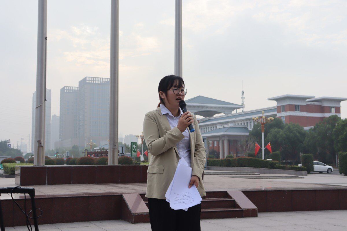 国旗护卫队踏着整齐有力的步伐向国旗台走去。在庄严的国歌声中,国旗缓缓升起,全体师生庄严肃立并齐唱国歌。学生代表赵伊蕊在国旗下进行演讲,随后,党总支书记朱婷婷发言致辞,强调了同学们在新的起点,应当努力学习、拼搏奋斗,体悟祖国成长之艰辛历程,勇担时代使命,争做有为青年,以实际行动践行“请党放心,强国有我”的青春誓言。