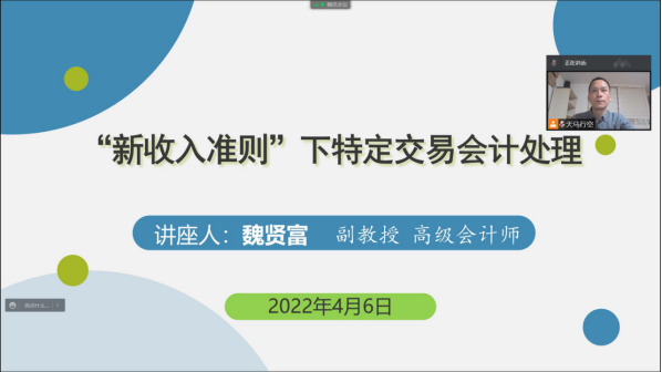 为丰富疫情管控期间学生的课余生活,做到停课不停学,4月6日晚,管理学院成功举办了以《新收入准则背景下企业特定交易事项的会计处理》为主题的线上学术讲座。讲座由财务会计系魏贤富副教授主讲,来自会计专业的近百名学生共同通过腾讯会议参加了本次线上讲座。