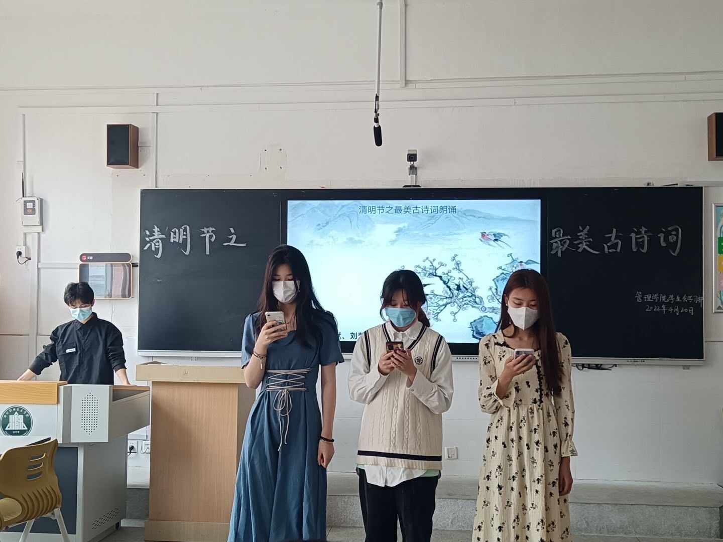 诵诗词美韵,沐华夏芬芳。2022年4月20日下午2点,管理学院学生会在1315教室举办我们的节日——清明节之“最美古诗词诗”歌朗诵比赛。