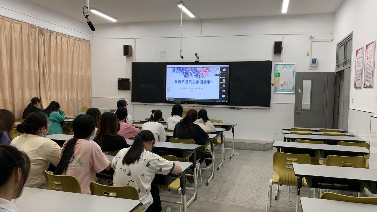 为迎接“5·25大学生心理健康节”,落实校2021年度“三全育人”综合改革院系试点项目之心理育人工程,5月26日晚7:00,管理学院特邀滁州学院大学生心理中心张瑾老师(国家二级心理咨询师)以“爱自己是终身浪漫的事”为题开展女大学生心理专题线上讲座。管理学院全体在校女生聆听了讲座。为提高讲座的实效性,特安排学生在各个教室集中聆听线上讲座,取得了良好的效果,学生表示会学会爱自己、善于爱自己。