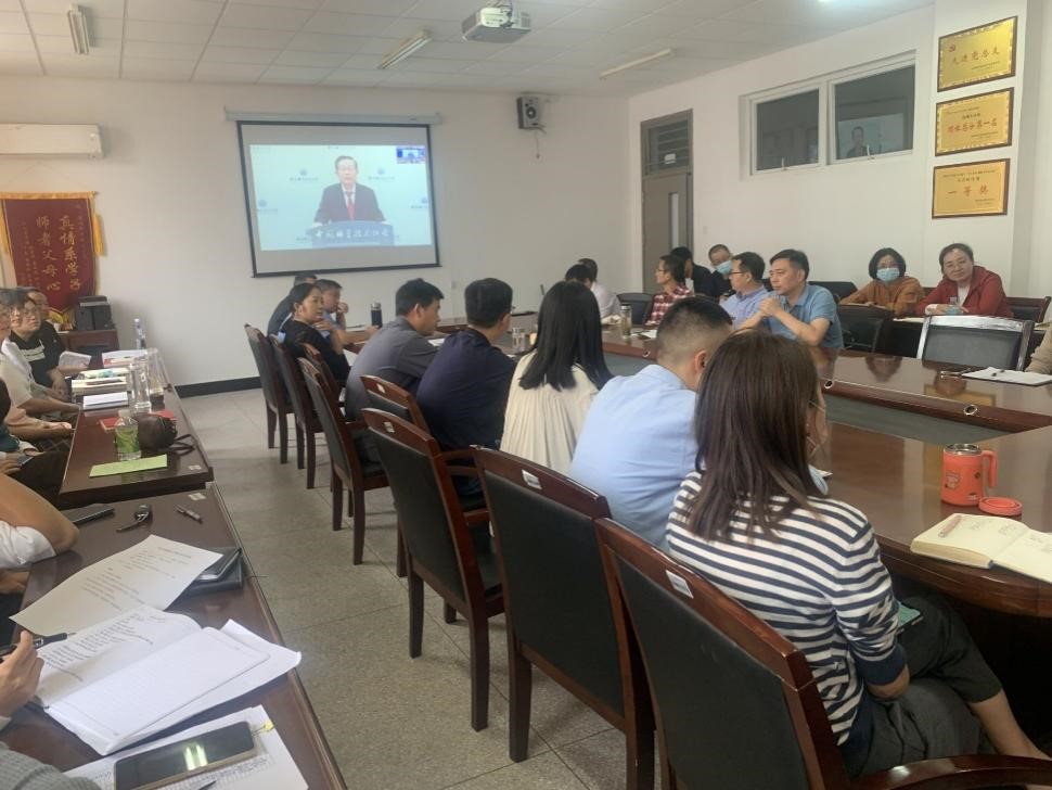 最后全体教职工视频观看学习了安徽省教育厅与德国下萨克森州科文部主办的第十五届中德应用型高等教育研讨会暨第二届长三角双元制教育国际合作研讨会。