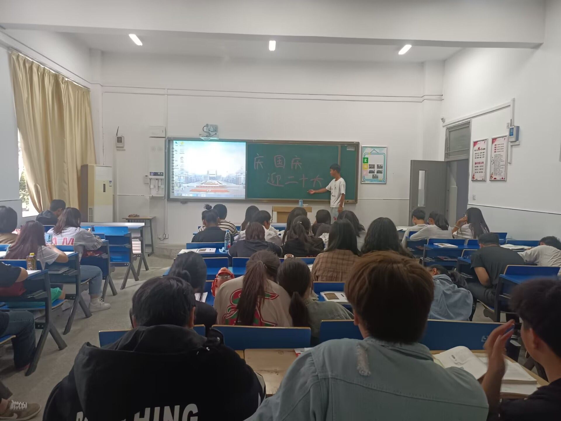 正值祖国母亲73岁华诞,为进一步激发我院团学青年的爱国热情,继承和弘扬爱国主义光荣传统,管理学院学生会于9月30日组织各班级开展“庆国庆,喜迎二十大”主题班会。