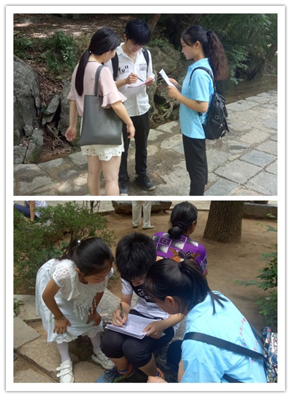 活动一开始,同学们在琅琊寺和醉翁亭对不同年龄层次的游客进行了满意度问卷调查。活动过程中,同学们积极主动,游客们也非常配合调查,积极反应对景区的看法以及认为需要改进的地方。经过此次调查活动,总体游客对景区的满意度还是挺高的,并且表示下次还会再来观光游览。