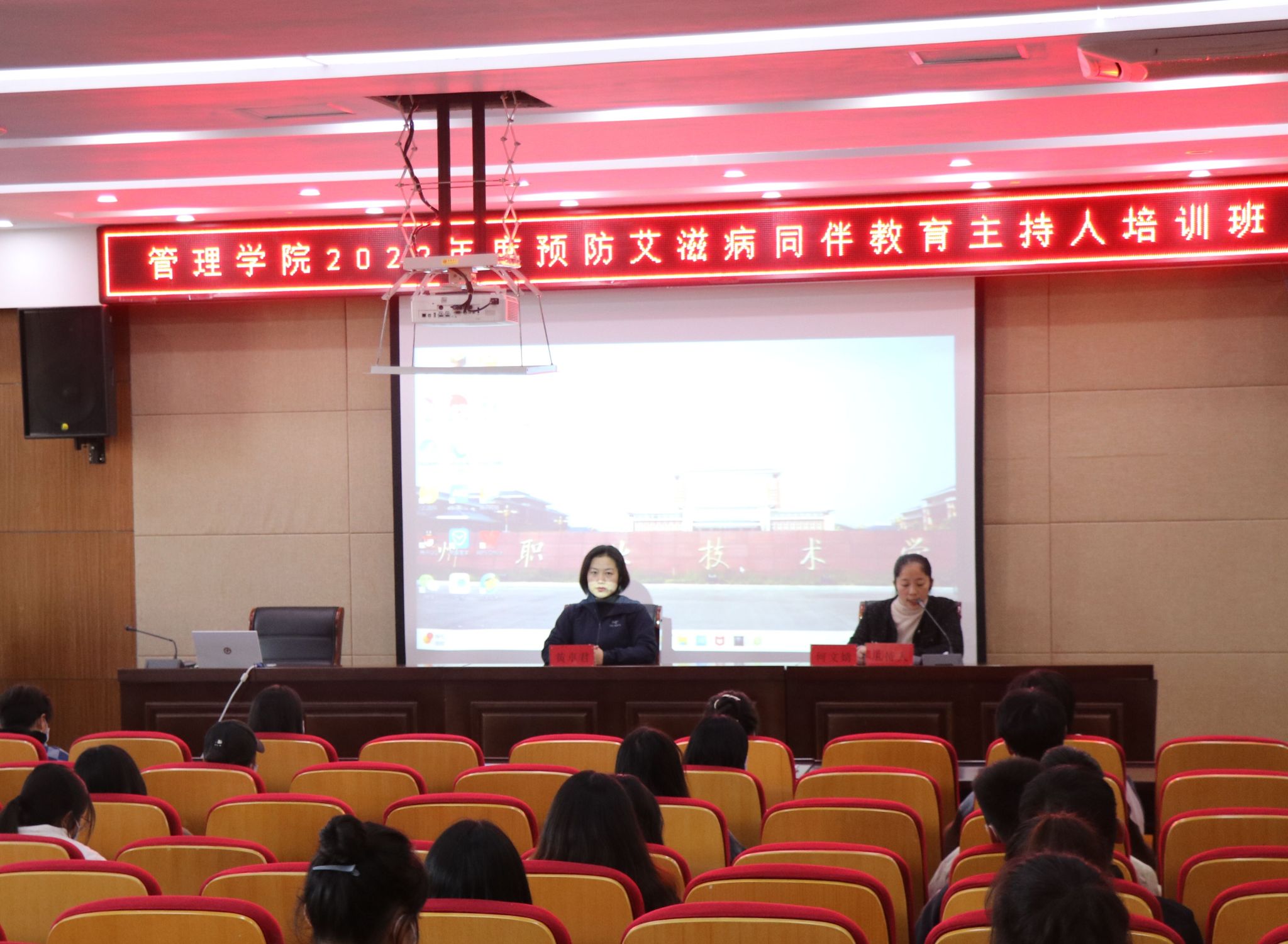 为了全面落实立德树人根本任务,深化管理学院三全育人综合改革试点工作,帮助同学们树立正确的恋爱观,科学的普及性知识,管理学院于11月15、17、18日在南阶205举办预防艾滋病同伴教育主持人培训班,来自管理学院、交通运输学院及商学院的50名班级骨干参加了此次培训,开班仪式由管理学院党总支副书记何文婧主持。