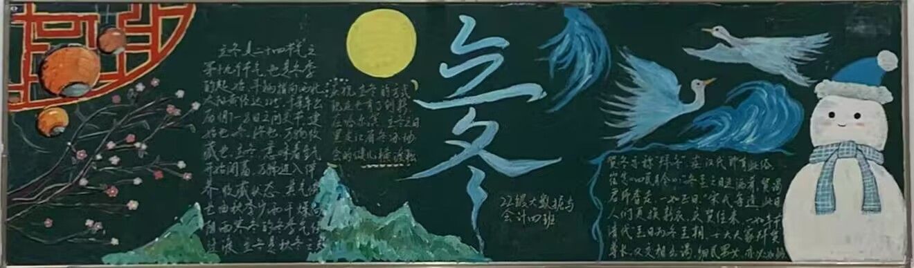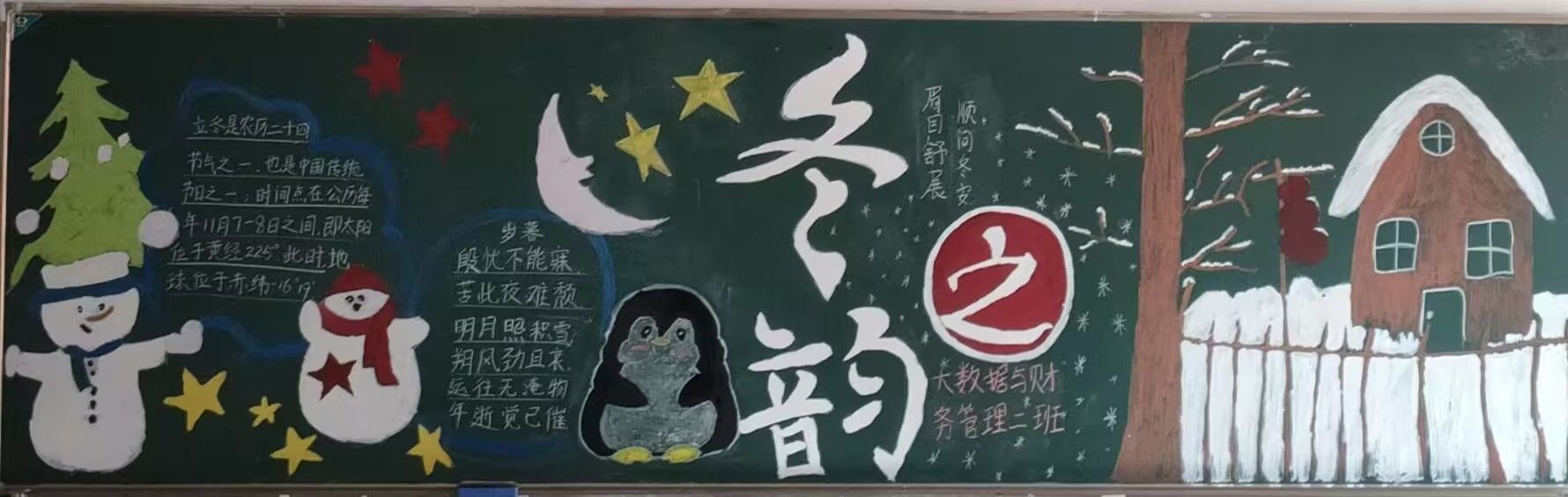 本次主题黑板报比赛,各支部同学构思多样,穿插了大量的“雪”元素,如雪人、雪枝、雪山、雪松等,营造了浓郁的校园文化气氛,表达同学们对传统文化的认识。
