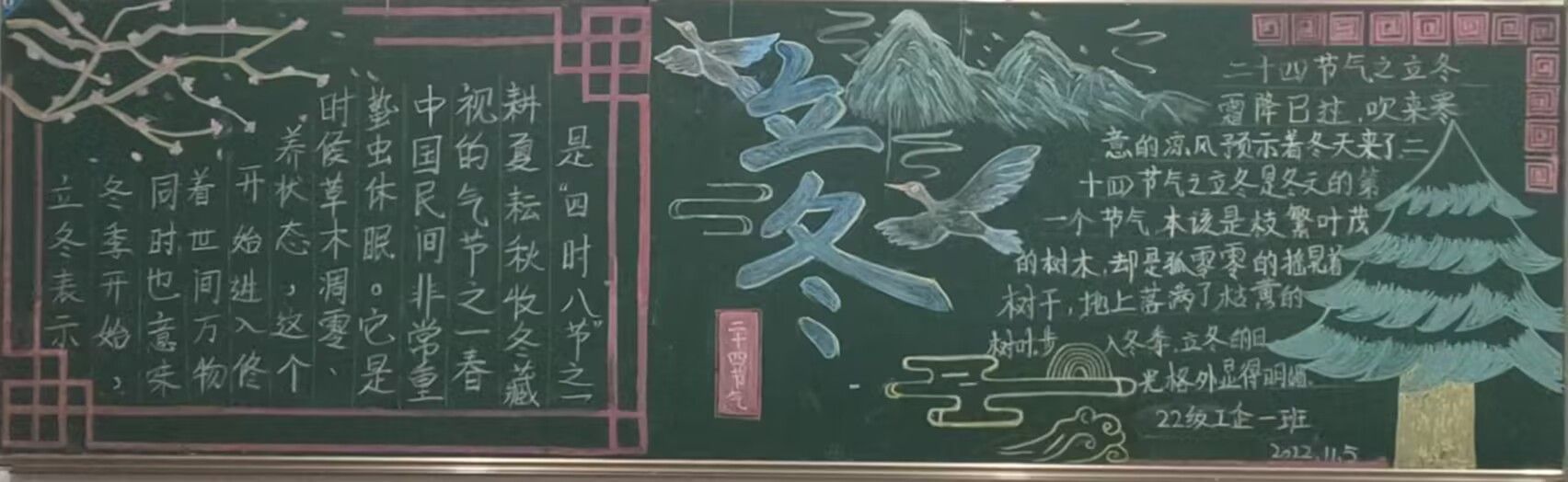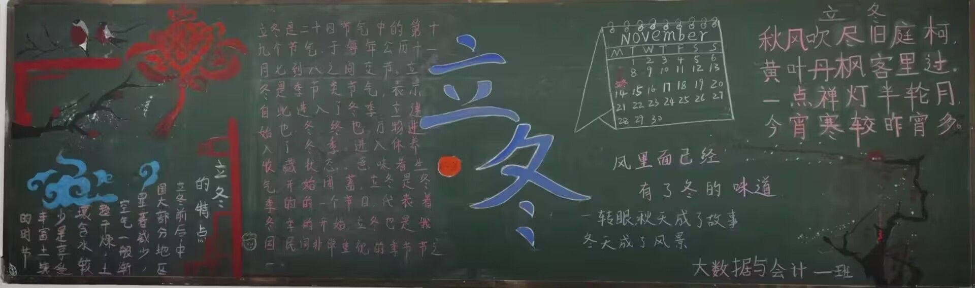 为传承中华文化,共鉴立冬之美,管理学院团总支于11月7日在致真楼举行立冬黑板报评比活动。本次活动由宣传部部长李凌峰负责,管理学院22级各团支部积极参加。