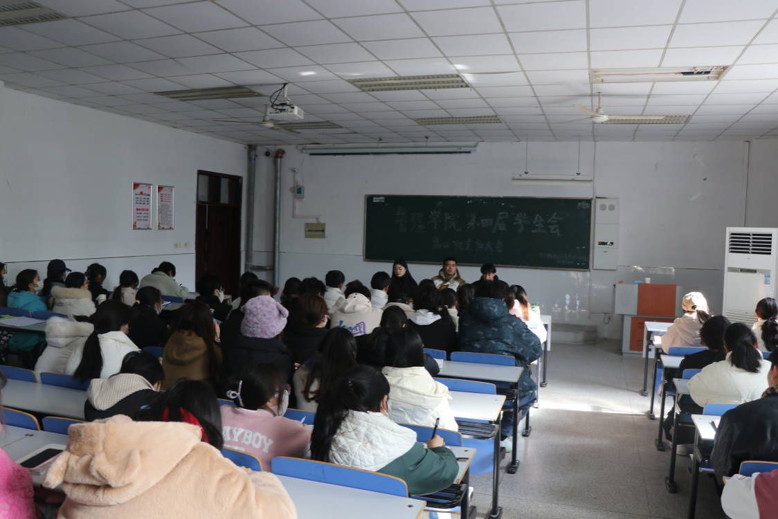 2022年12月1日中午11时40分,管理学院学生会在致真楼1101教室召开第四届学生会第四次全体大会,全体人员参加。